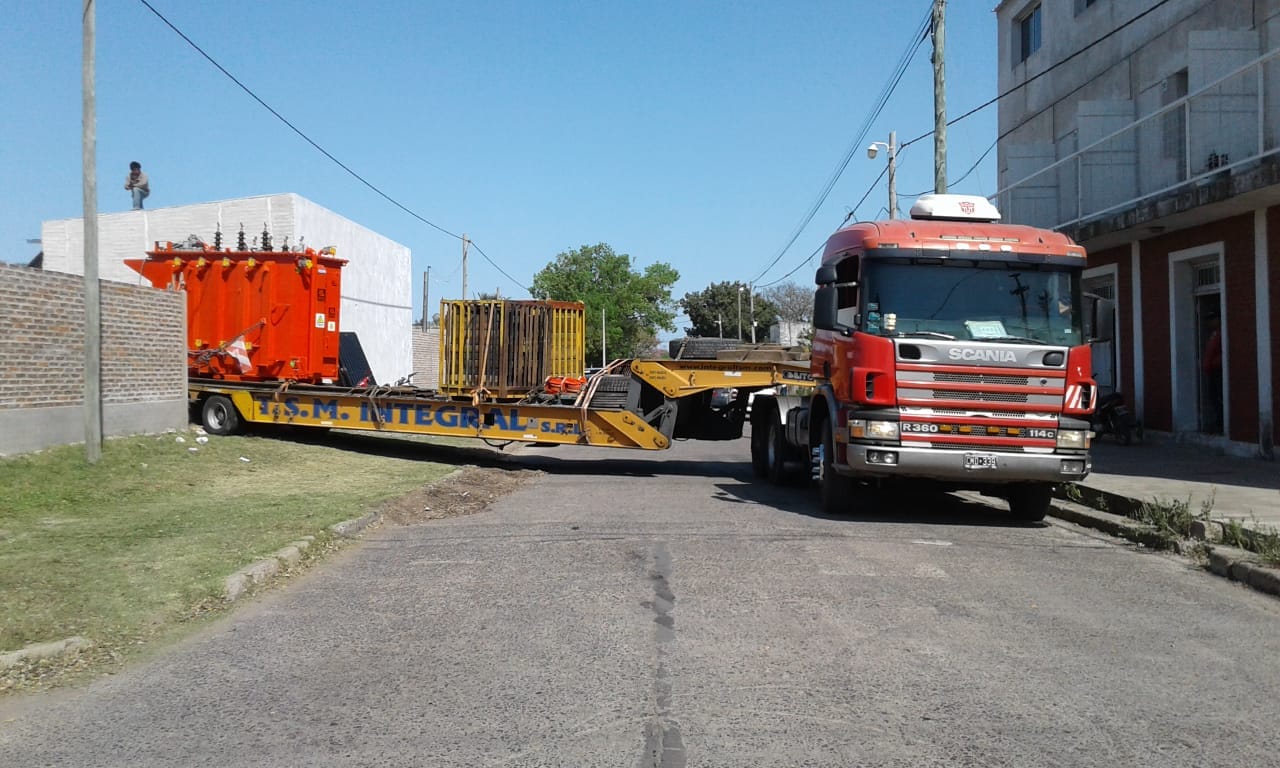 En horas de la mañana del viernes llegó a nuestra ciudad los equipamientos para el centro de distribución “Belgrano” que la Dirección Provincial de Energía construyó en un predio ubicado en la esquina de calles Las Heras y Monte Caseros.