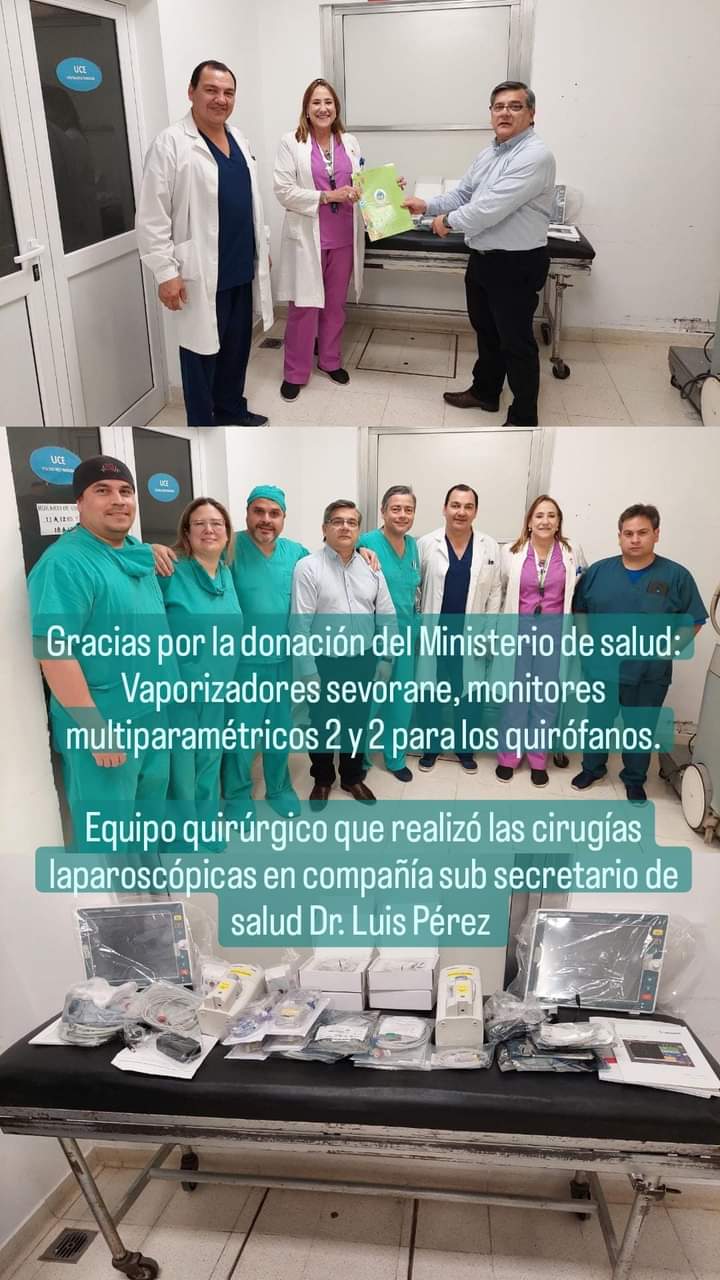 La entrega fue realizada por el Subsecretario de Salud, Dr. Luís Pérez, en el marco de la visita del equipo quirúrgico que realizó las cirugías laparoscópicas.