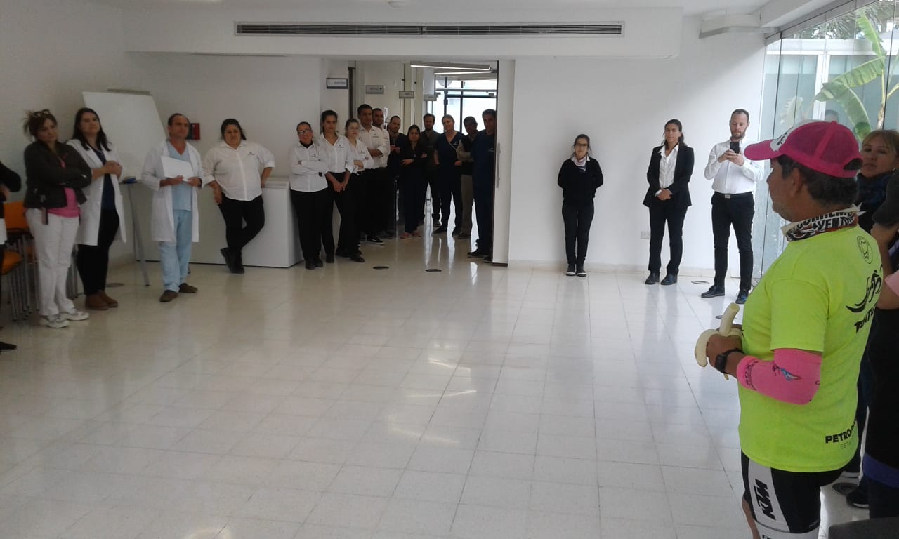 Tras la recepción en la explanada del centro de salud, los visitantes recibieron un diploma por esta iniciativa, oportunidad en el que el Gerente Médico Dr. Christian Larralde, puso en valor lo realizado por losa atletas, al tiempo que los felicitó y les agradeció en nombre de todo el equipo; para finalizar fueron invitados a conocer el Oncológico.