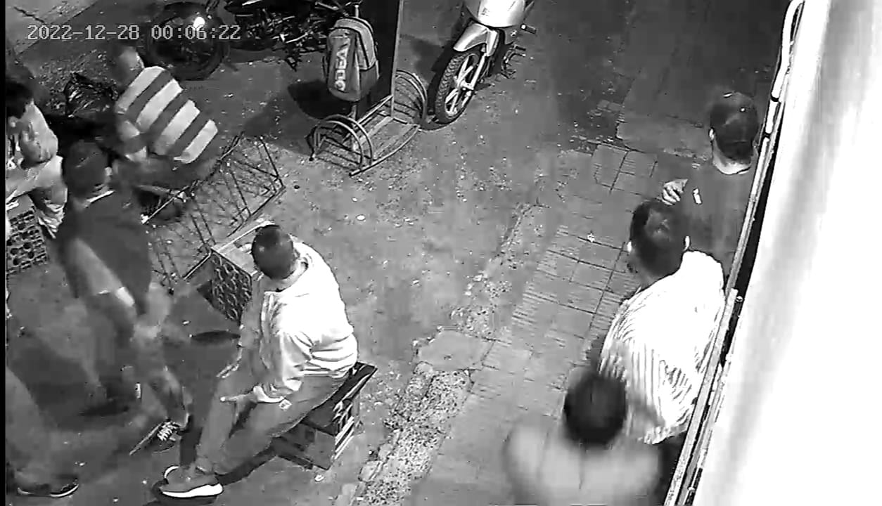 Un grupo de personas, todas de sexo masculino, que se encontraban sentados frente a un conocido comercio de la zona, divisaron la presencia del atacante, así se desprende de los audios del video que se virilizó en las redes en el que se muestra el momento del incidente.
