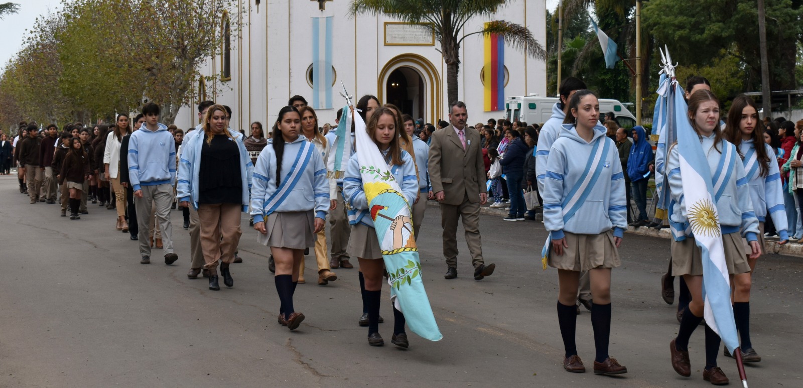 El acto central estuvo encabezado por el intendente José Irigoyen y contó con la participación de autoridades de fuerzas militares y de seguridad, representantes de establecimientos escolares y un nutrido grupo de vecinos que se sumaron a la celebración de esta fecha patria.