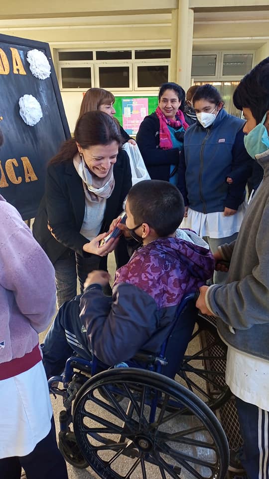 Tras el emotivo y sencillo acto la Senadora Espindola saludo a los niños de la escuela especial y les entrego golosinas, a la vez que tomó contacto con el equipo docente que allí desempeña sus funciones.