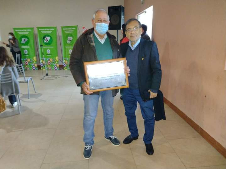En el marco de la jornada sobre enfermedades vectoriales para la IV Región Sanitaria que la Dirección de Zoonosis y Enfermedades Vectoriales de la Provincia realizó en la mañana del jueves en el Club Huracán, el Ministro de Salud Ricardo Cardozo entregó una plaqueta al Médico Veterinario Daniel Sarli en reconocimiento al trabajo y trayectoria al frente del programa provincial de lucha contra la hidatidosis.