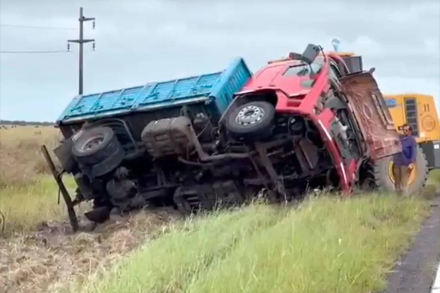 El protagonista del vuelco fue un camión Ford 1723 que era conducido por un hombre de 37 años con domicilio en la ciudad de Curuzú Cuatiá, Corrientes.
