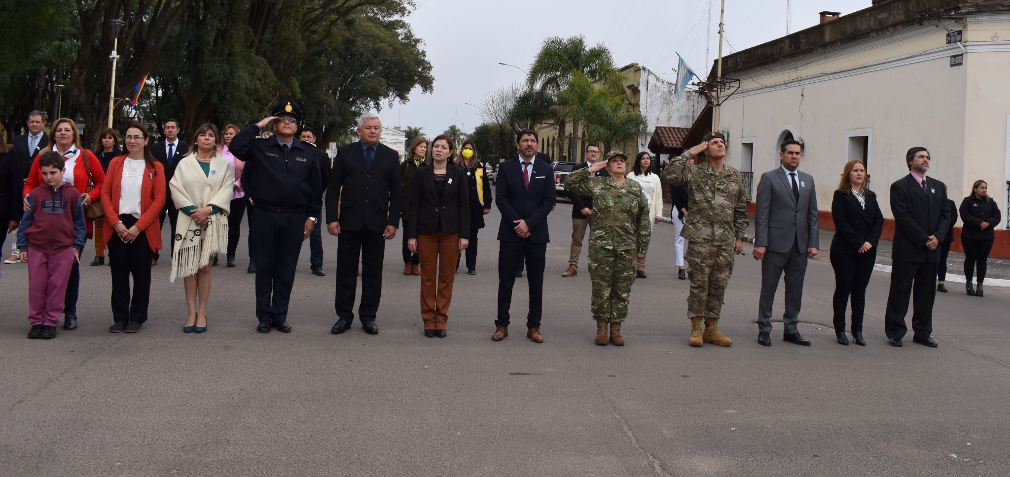 Como es costumbre, hubo una concentración de autoridades en el Palacio Municipal y desde allí, portada por los Veteranos de Guerra de Malvinas y autoridades encabezadas por el Intendente José Irigoyen, se trasladó la bandera nacional hacia el mástil principal de la Plaza Belgrano donde fue izada por los Veteranos de Guerra. Minutos más tarde, las autoridades se trasladaron hasta la Plaza General San Martín en donde también se izó la enseña Patria, portada por los Veteranos de Guerra de Malvinas y luego izada por el Intendente Municipal José Irigoyen, la presidente del Honorable Concejo Deliberante Mariel Naya Yrigoyen, el Comandante de la Primera División de Ejército Aldo Ferrari, el presidente de la Asociación Sanmartiniana Julio Argentino Ramírez en homenaje al prócer correntino.