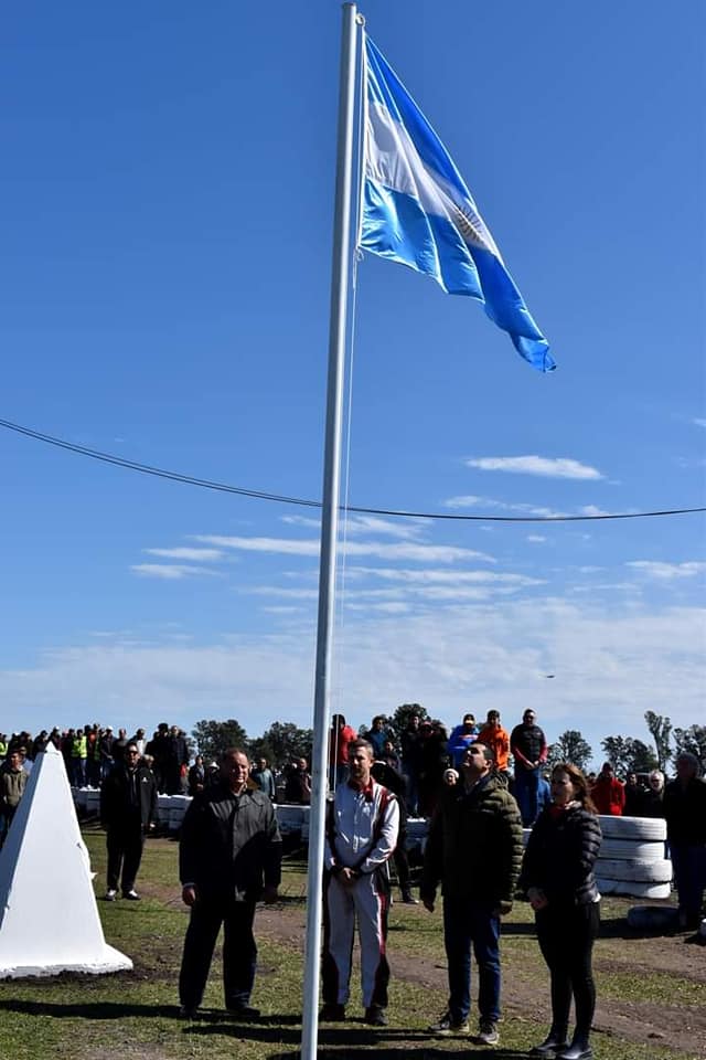 En primer término, se enarboló nuestra enseña Patria por parte de las autoridades municipales y de la Comisión del Auto Club en el mástil ubicado en inmediaciones del monolito del autódromo para dar inicio al acto.