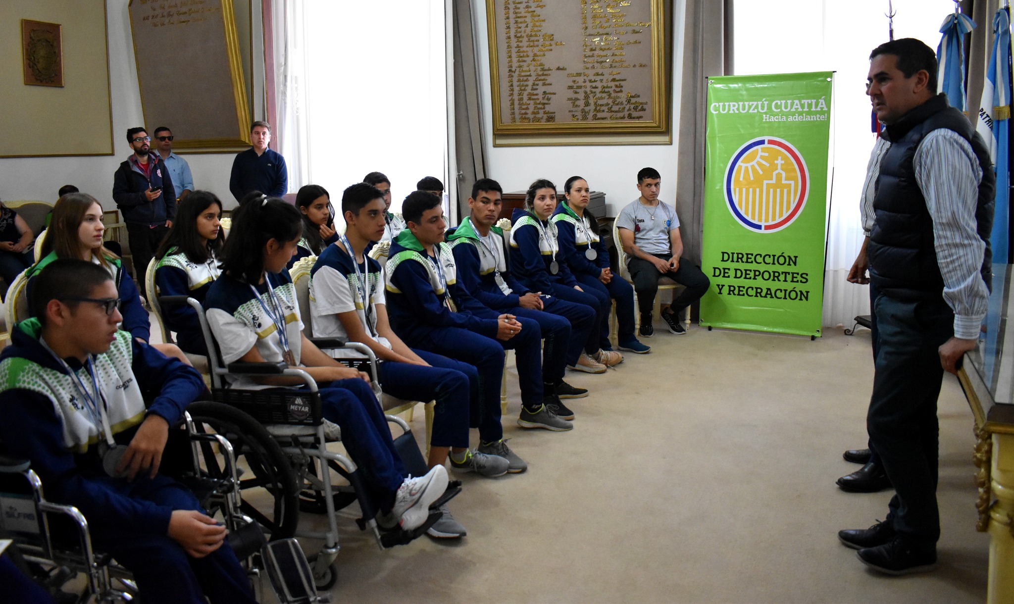 El intendente municipal José Irigoyen, acompañado de funcionarios de su gabinete, recibió este jueves por la mañana en el Salón Dorado de los Intendentes a los deportistas que participaron en la instancia nacional de los Juegos Nacionales Evita 2022.