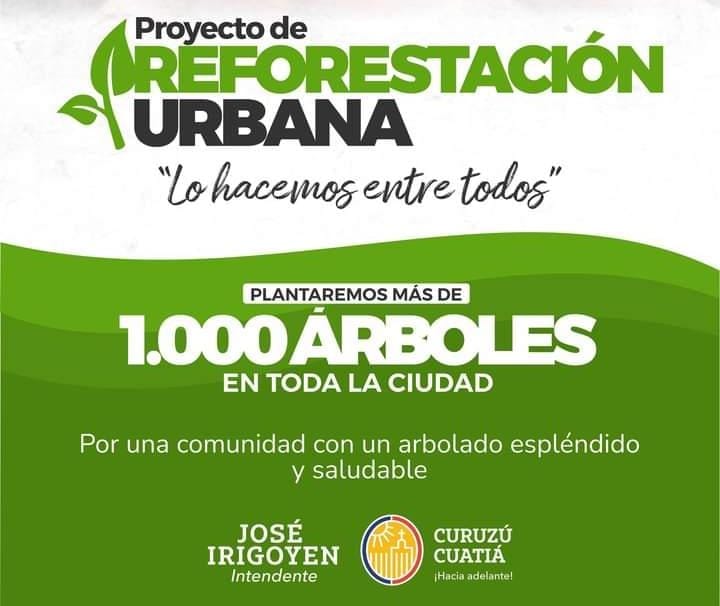 La Municipalidad de nuestra ciudad anunció mediante su cuenta oficial de Facebook que ya está en marcha el Proyecto de Reforestación Urbana que contempla la plantación, en una primera etapa, de más de 1.000 árboles en el ejido urbano curuzucuateño.