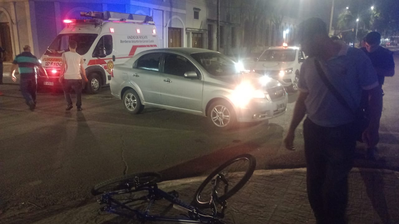 Una bicicleta y un automóvil protagonizaron en horas de la noche del miércoles un accidente en la esquina de las calles General Ramírez y Castillo de nuestra ciudad.