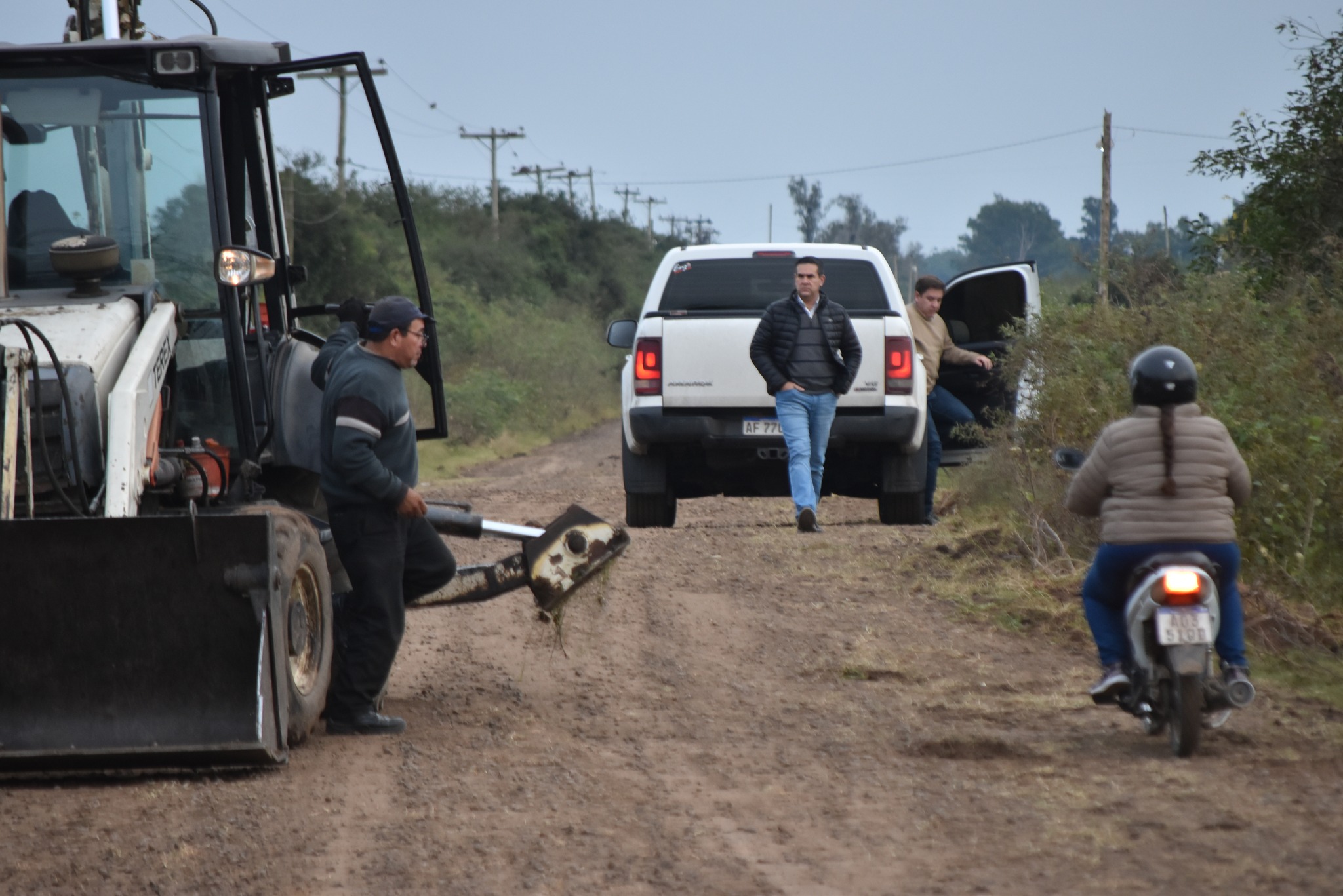El intendente municipal realizó en la mañana del miércoles una visita para supervisar los trabajos de bacheo y desmonte que se están llevando a cabo en algunos tramos de la calle Sarmiento, camino al Sarandí, después del ex Batallón.