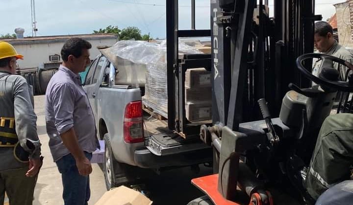 El Comisionado Interventor Dante Romero recibió las nuevas luminarias LED gestionadas ante la DPEC que serán destinadas a la red de alumbrado público de Cazadores Correntinos.