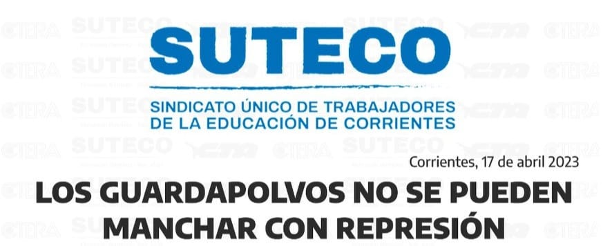 Bajo el titulo “Los guardapolvos no se pueden manchar con represión”, el gremio docente que conduce el curuzucuateño Fernando Ramírez se expresó respecto a una situación ocurrida en Saladas.