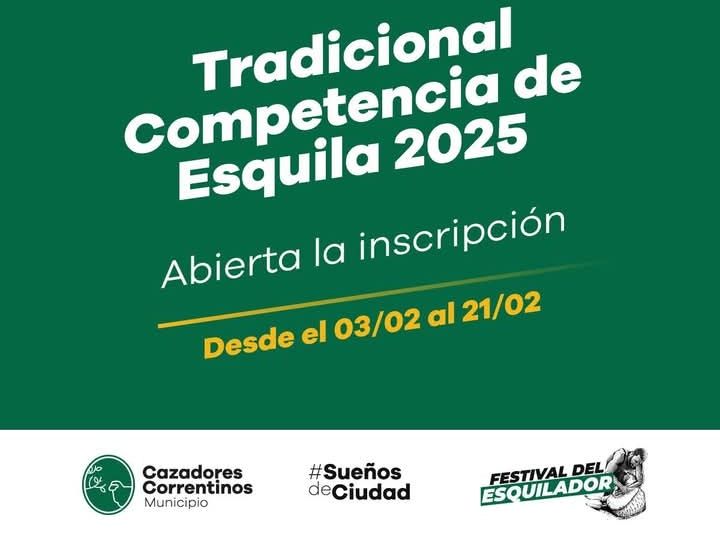La Municipalidad de Cazadores Correntinos invita a todos los esquiladores a participar de la XIX edición del Festival del Esquilador.