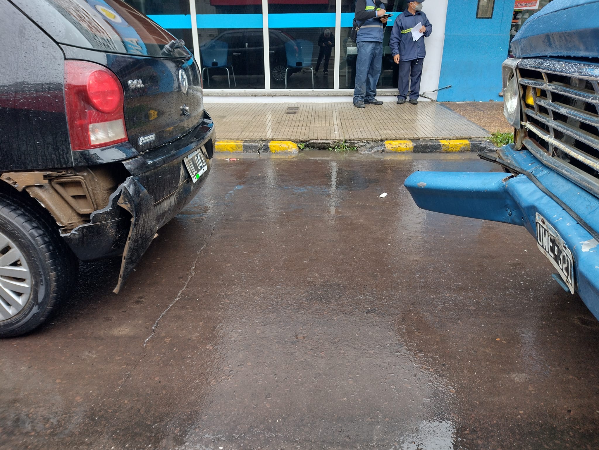 Según lo observado en el lugar el auto terminó con con parte del paragolpes trasero dañado, a la altura del faro trasero derecho, mientras que la camioneta tenía el paragolpes delantero doblado del lado izquierdo. Las causas del accidente son motivo de investigación.
