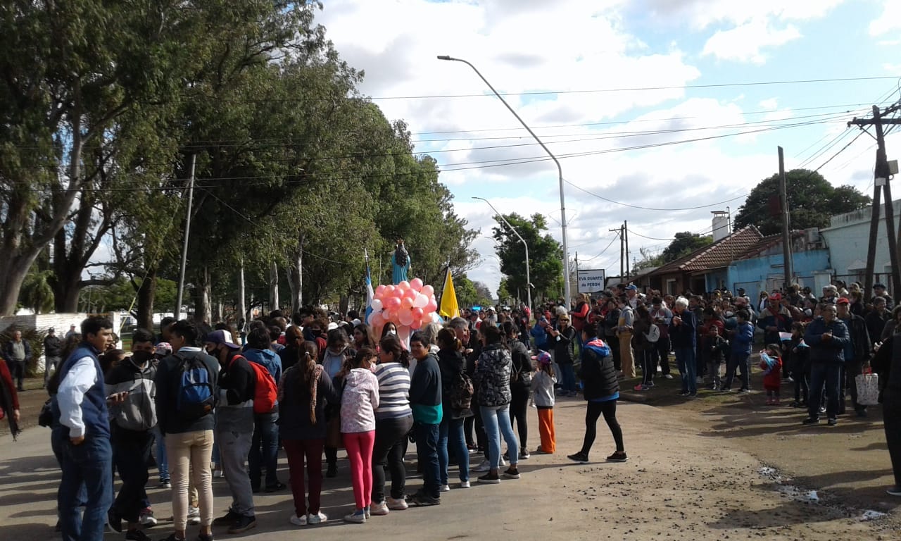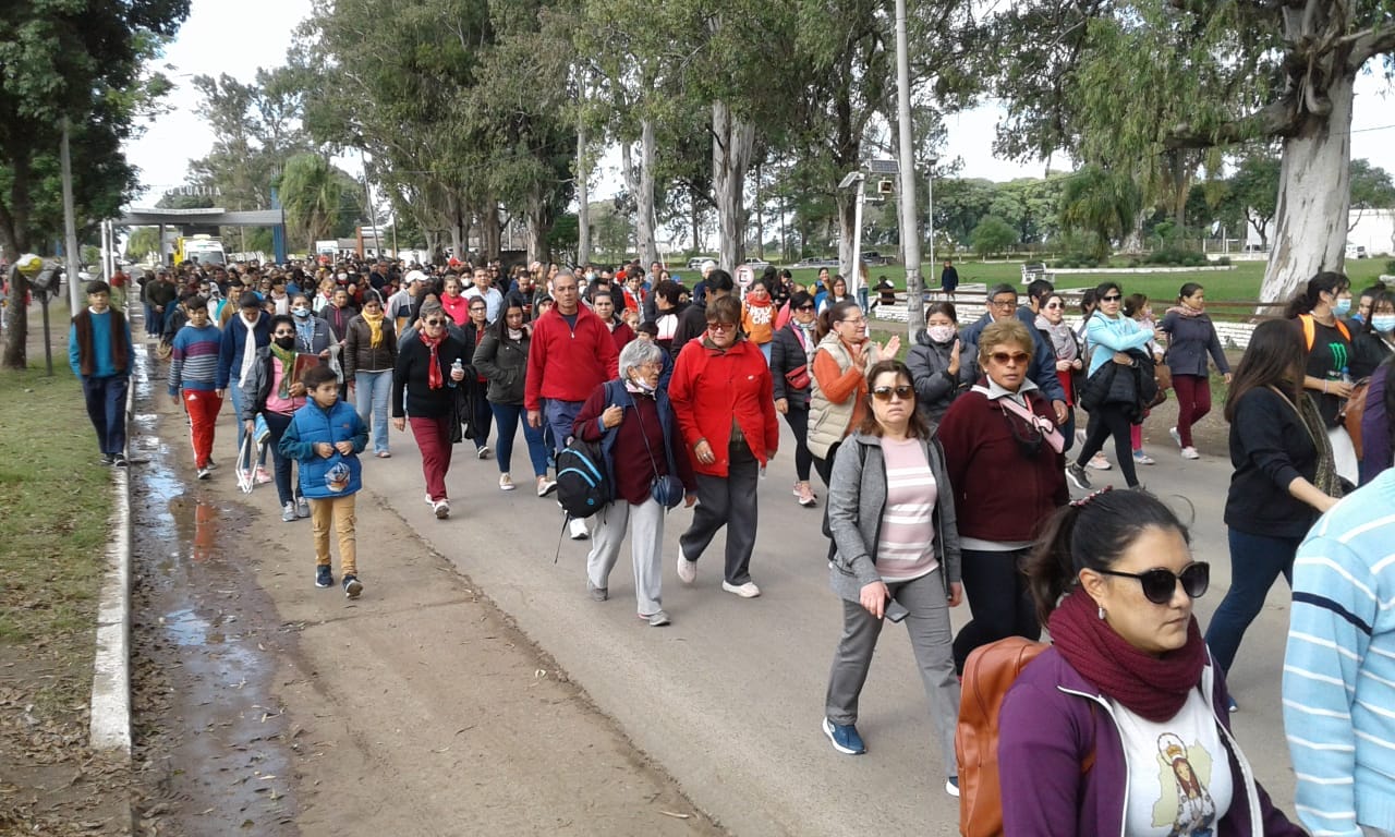 La concentración tuvo lugar en el pórtico del acceso oeste desde las 13:30, hasta allí llegaron personas de distintos barrios y de todas las comunidades católicas curuzucuateñas, que con entusiasmo y algarabía marcharon desde las 14 hacia predio de la Virgen.