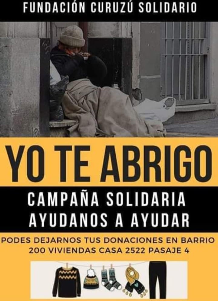 Por otra parte, bajo el lema “Yo Te Abrigo”, la Fundación Curuzu Solidario lleva adelante una campaña similar con el objetivo de recolectar también prendas de abrigos y calzados; las donaciones deben llevarse al Barrio 200 Viviendas, Casa 2522, Pasaje 4.