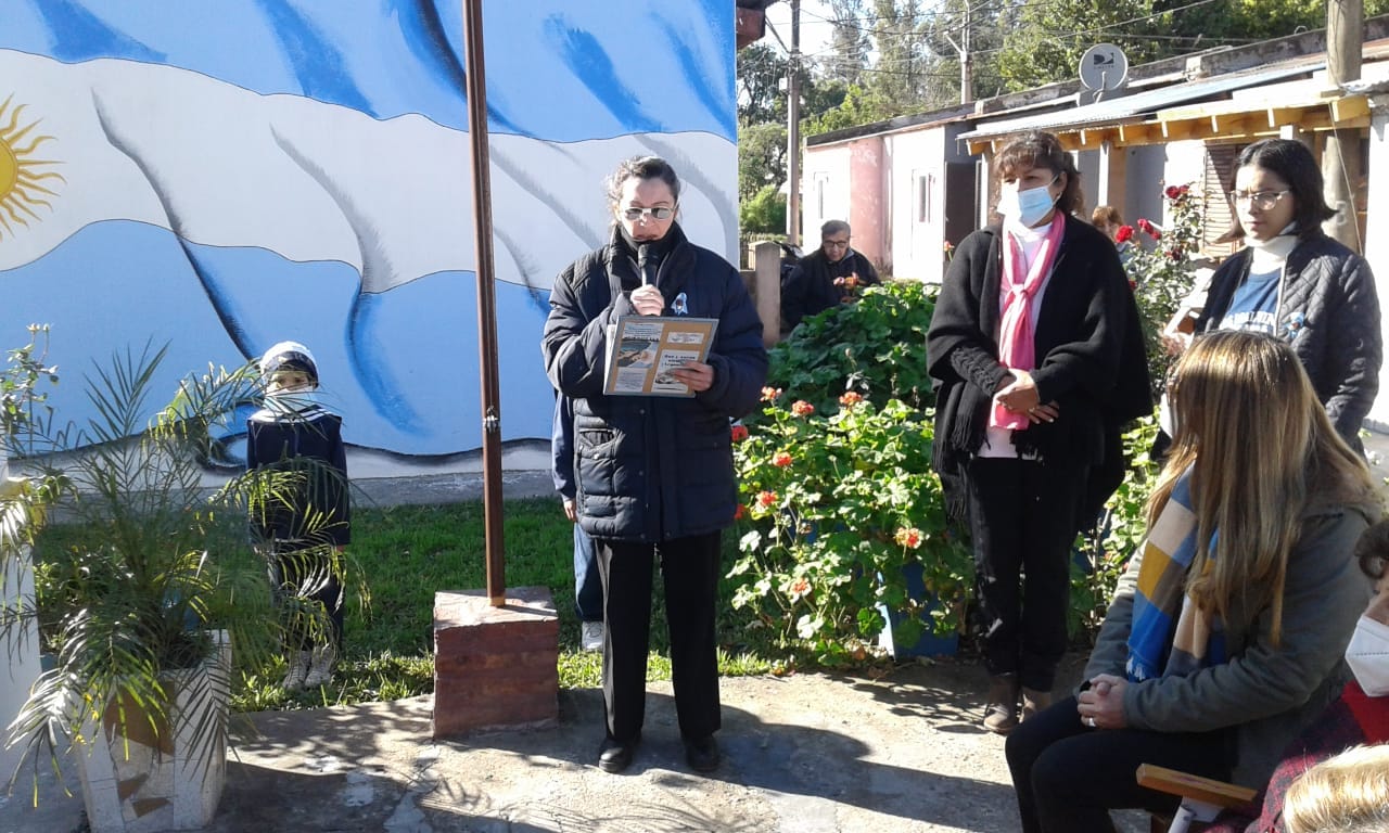 Para recordar el Día de la Afirmación de los Derechos Argentinos sobre Malvinas es Islas del Atlántico Sur, la escuela llevo adelante una emotiva ceremonia en la plaza que lleva el nombre de Meza que se encuentra en el barrio de INVICO, pegada a la casa donde viven su madre y hermanos.