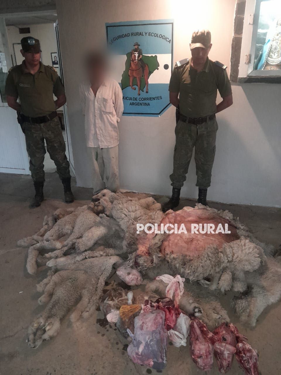 El procedimiento, lo concretaron los mencionados efectivos en un establecimiento rural ubicado en el Paraje María Chica, lugar donde lograron hallar y secuestrar cueros de animales ovinos recientemente faenado, un freezer con productos cárnicos de animal ovinos, de diferentes cortes, siendo un total de 20 kilogramos y un cuchillo; así también detuvieron a un hombre mayor de edad, relacionado presuntamente al hecho que se investiga.