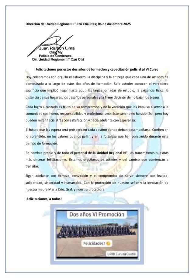 De la ceremonia, encabezada por el Gobernador de la provincia Gustavo Valdés, participó el Director de la Unidad Regional III de Curuzú Cuatiá Comisario mayor Juan Ramón Lima.