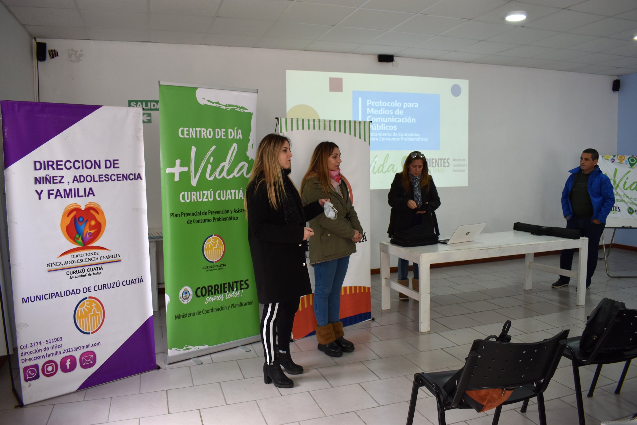 El evento, que contó con una concurrencia de docentes, periodistas y estudiantes de la carrera de Comunicación Social del Instituto Superior de Curuzú Cuatiá, se concretó en el salón "Punto Digital" de la Oficina de Empleo por calle General Ramírez 753, con la presencia de la directora de Niñez, Adolescencia y Familia Valeria Oria y los capacitadores que vinieron de Corrientes, la coordinadora del Plan Provincial +Vida Silvana Vischi, la doctora Gabriela Albornoz del homónimo centro en la capital correntina y el licenciado Eduardo Pipet del equipo central de coordinación.