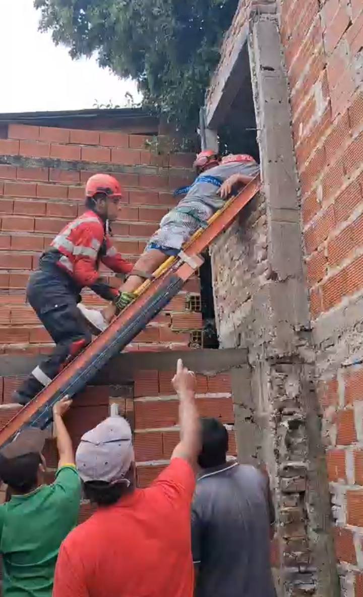Al llegar al lugar, se hallaba presente personal del Hospital Irastorza, quienes no podían bajar al paciente por la escalera desde el primer piso, por lo que se solicitó colaboración a personal de bomberos voluntarios, quiénes acudieron al lugar y lograron bajarlo en una tabla de rescate. Posteriormente el hombre fue trasladado hacia el nosocomio local.