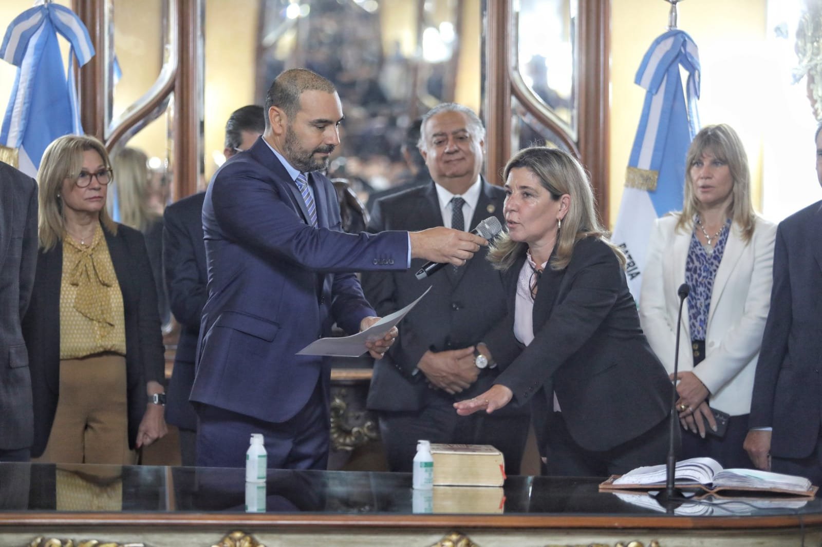 Primeramente, participo en el Salón Verde de Casa de Gobierno del acto de jura de la nueva Ministra de Turismo de la Provincia, Ingeniera María Alejandra Elciri y de Mario Salvia como nuevo Interventor en el Instituto Correntino del Agua y Ambiente. En la oportunidad junto a la Senadora Verónica Espíndola, el Irigoyen saludó y felicitó a los nuevos funcionarios designados.