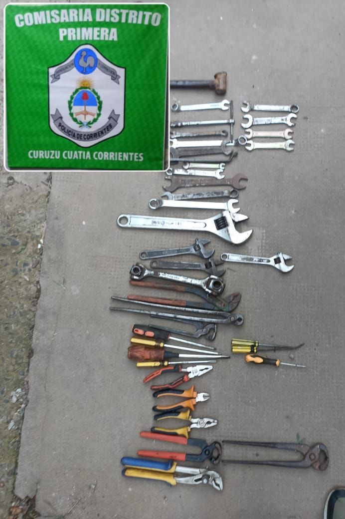 Entre otros elementos, los efectivos secuestraron, llaves, destornilladores, tenazas, pinzas y llave inglesa.