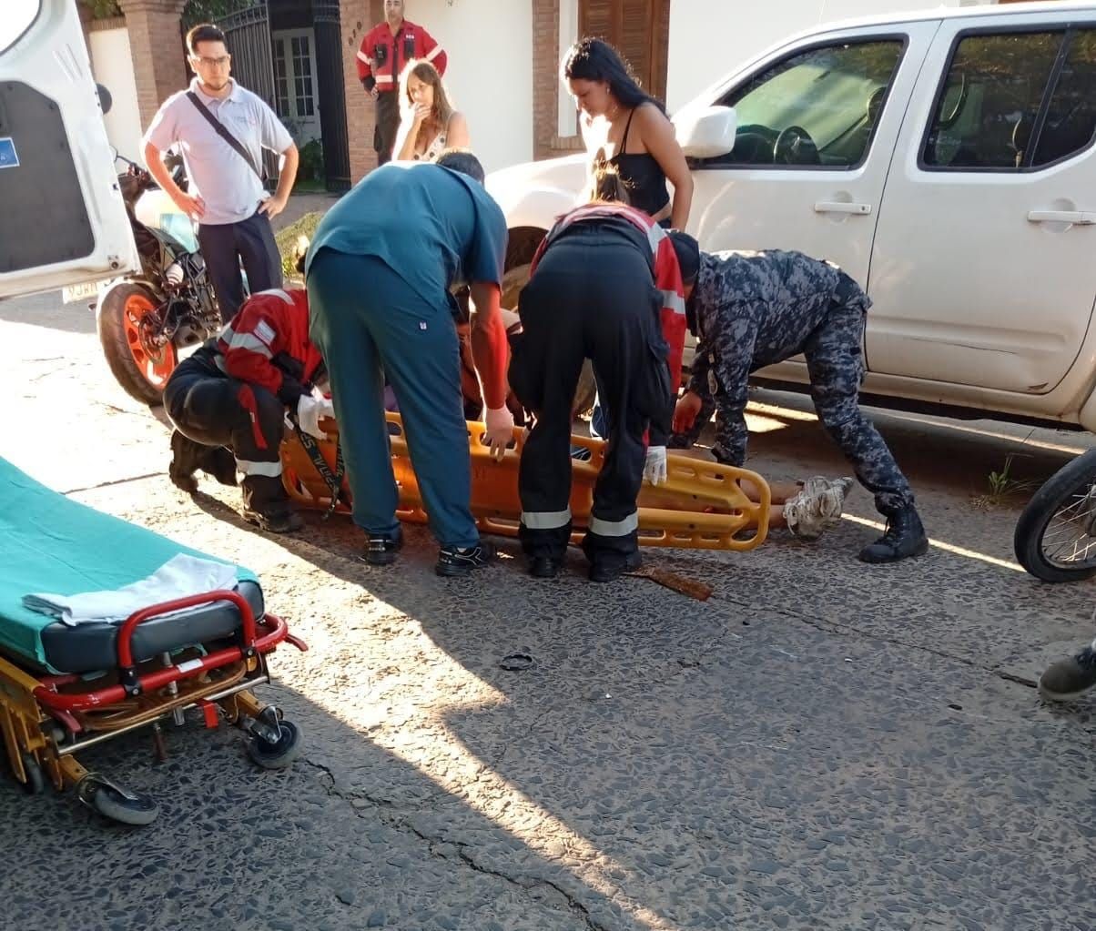 De acuerdo a lo informado por las autoridades a Enfoque Digital, una moto de 110 centímetros cúbicos y un automóvil protagonizaron una colisión cuando circulaban sobre Avenida Eva Perón el pasado miércoles en horas de la siesta.