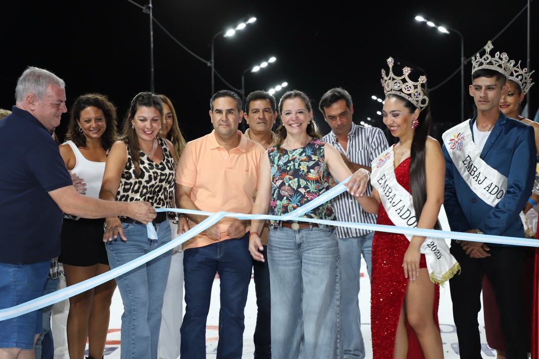La Intendente Verónica Espínola y el Viceintendente Miguel Guillermo Güenaga, junto al Ministro de Desarrollo Social José Irigoyen y la Presidenta del Honorable Concejo Deliberante, Dra. Marisa Acuña, dejaron formalmente inaugurados los Carnavales 2026.