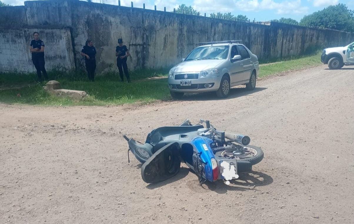 Una camioneta Fiat Strada y una moto de 110 centímetros cúbicos chocaron en horas del mediodía del viernes en la esquina de las calles Sorribes y Diacono Juan Gauna, en zona del Cementerio Nuestra Señora de los Desamparados.