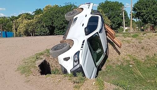 Ocurrió en horas de la tarde del miércoles y la camioneta circulaba sobre calle Bompland, en el Barrio Santa Rosa, y luego de cruzar el paso a nivel alto de calle Abigail Pintos, se precipitó bruscamente en una zanja.