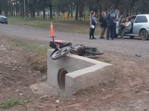 Un automóvil y una moto protagonizaron una fuerte colisión poco antes de las 10 de la mañana en la intersección de Avenida Rucci y ex ruta 14, el mismo dejo como saldo dos personas heridas, ambas circulaban a bordo de la moto.