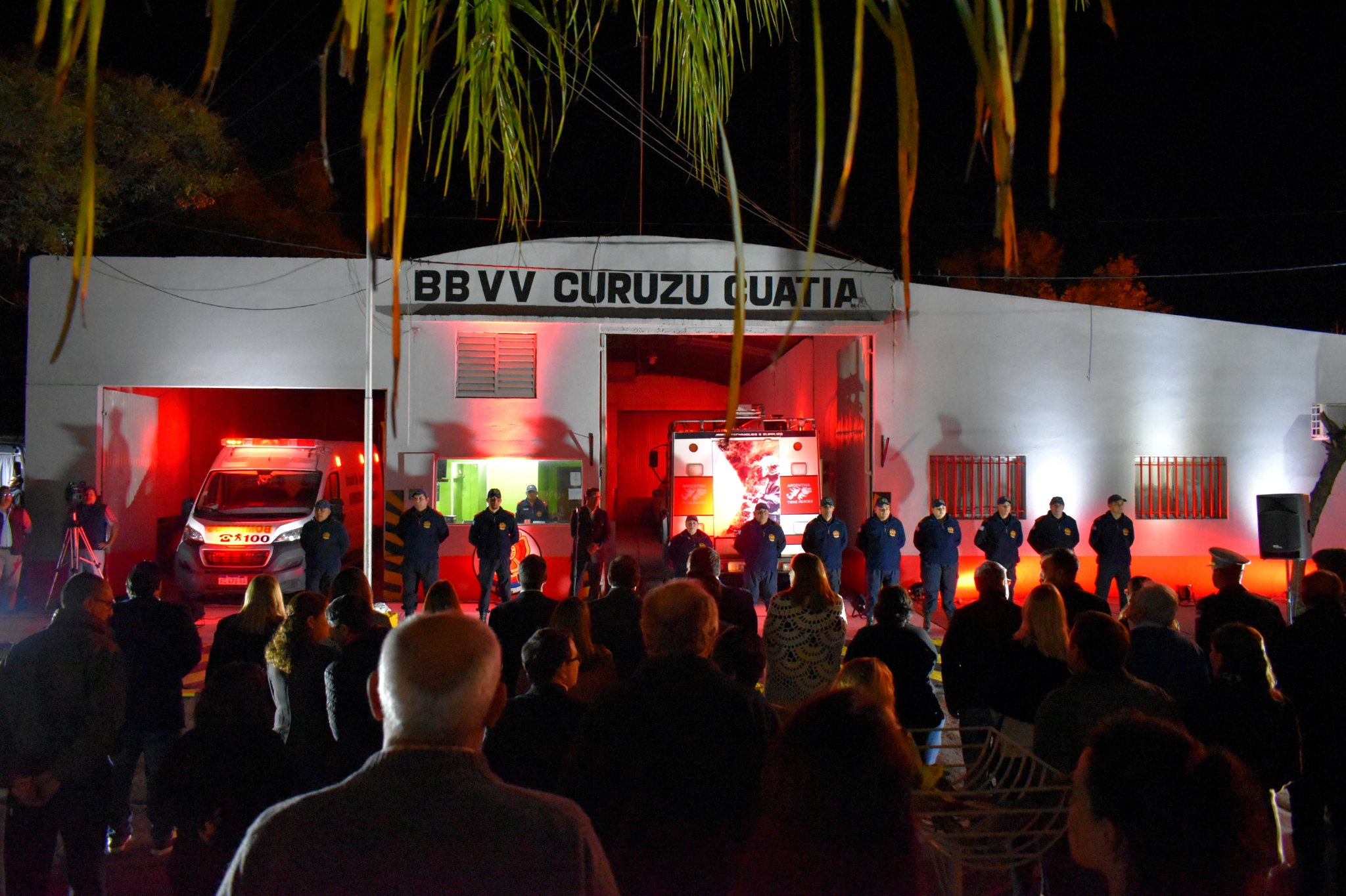 Fue a la medianoche para recibir el día. La ceremonia tuvo lugar frente al cuartel de Bomberos Voluntarios.