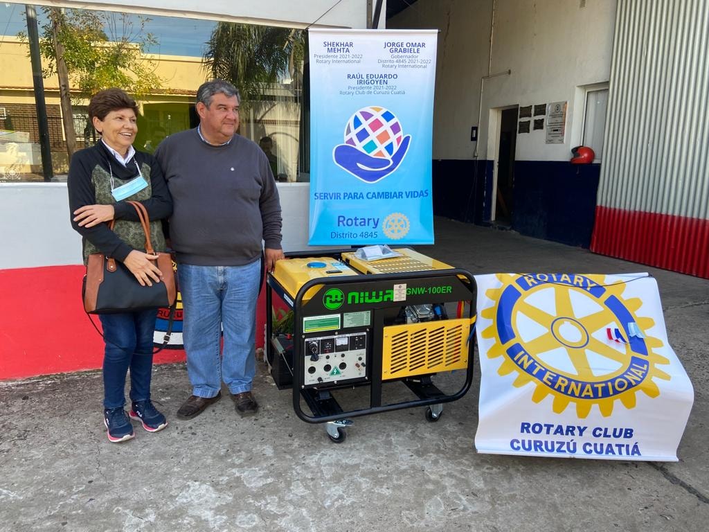 Mediante una gestión realizada ante el Rotary Club Buenos Aires, el Rotary Club de Curuzu Cuatiá dono al cuartel de Bomberos Voluntarios un Grupo Electrógeno de Alta Potencia.
