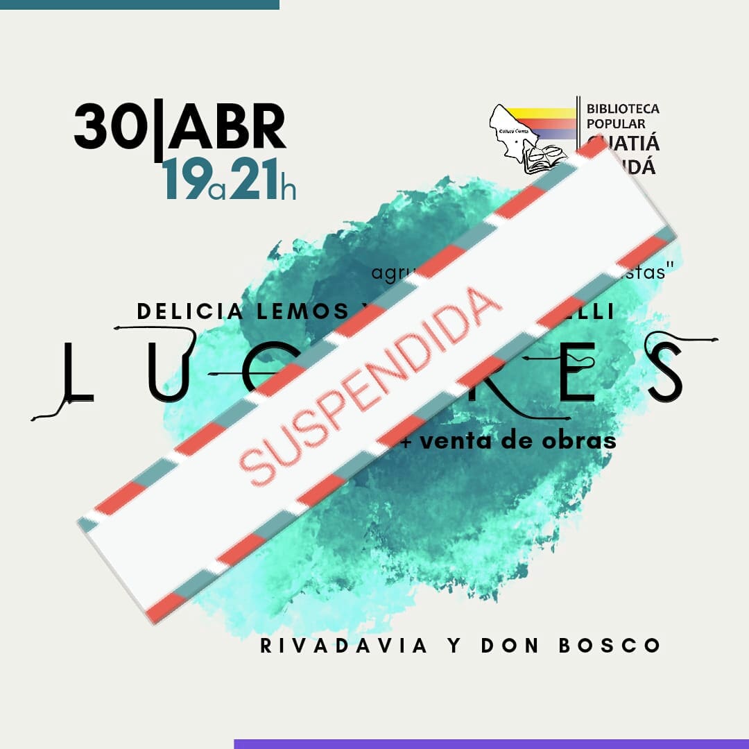La muestra que iba a realizarse este sábado en la Biblioteca Popular Cuatia Renda queda suspendida por el fallecimiento del padre de la Presidente de la institución.