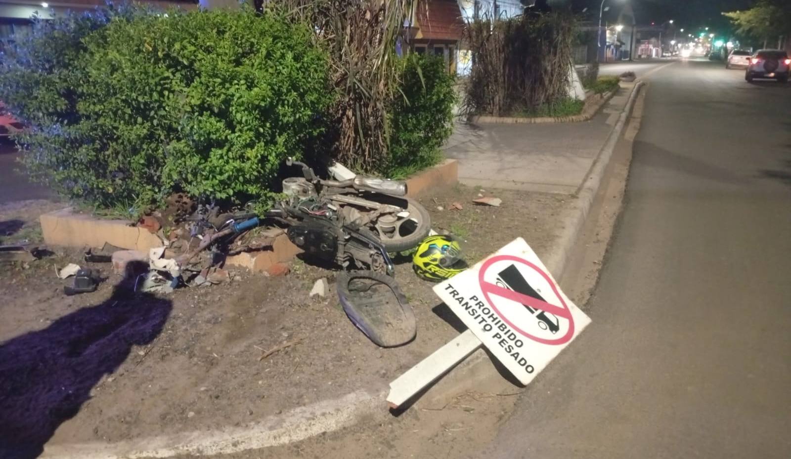 Dos motos protagonizaron en horas de la noche del lunes una fuerte colisión en calle Berón de Astrada, a la altura de la Rueda Rotaria.