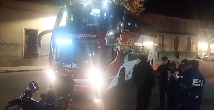 Un micro de larga distancia y una moto de 110 centímetros cúbicos que funciona como delivery colisionaron en horas de la noche del viernes pasado frente al acceso a la Terminal de Ómnibus de nuestra ciudad.